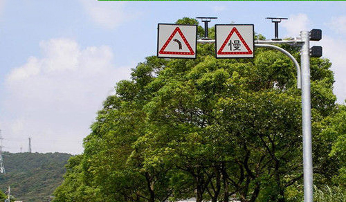 太陽能交通標志是交通標志牌的一種,由標志面、標志底板、太陽能電池板、控制器、發光單元(LED)組成,用文字與圖案傳遞警告、禁令、指示信息給司機和行人,用以管理道路交通的安全設施。它給道路使用者以確切的道路交通信息,使道路安全暢通,事關司機和行人的生命財產安全,是一種不可缺少的交通安全附屬設施。